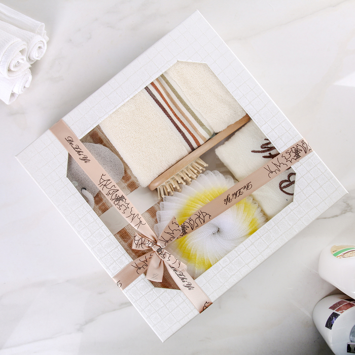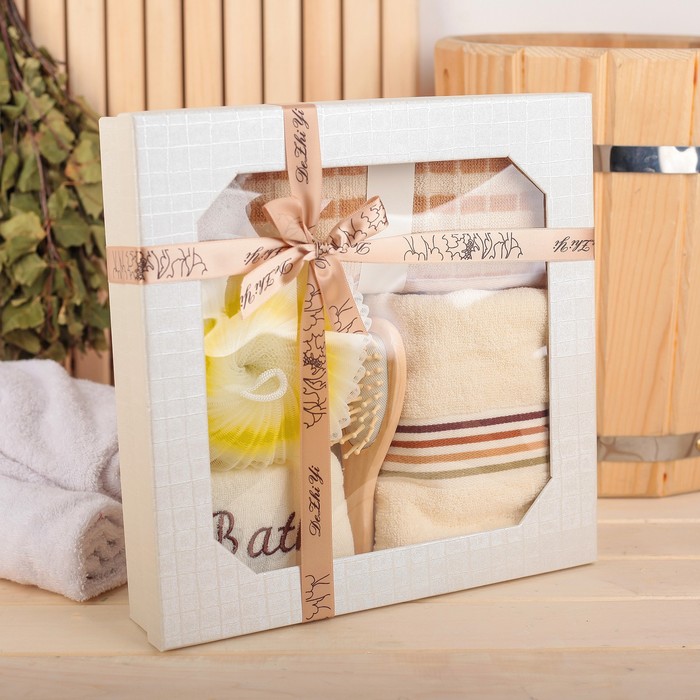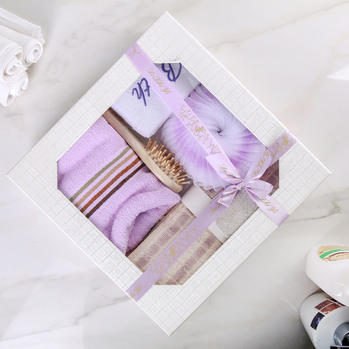 Набор банный 6 предм. (3 мочалки, полотенце, пемза, расческа) микс