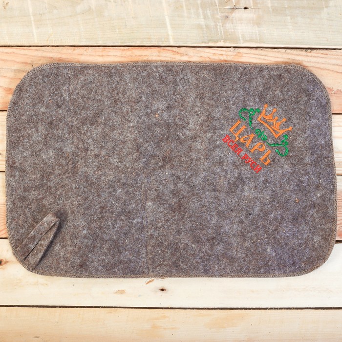 Шапка и коврик изготовлены из натурального войлока – идеального материала для банных процедур. Он обладает низкой теплопроводностью (не нагревается даже при высоких температурах), влагоустойчив, легко чистится.