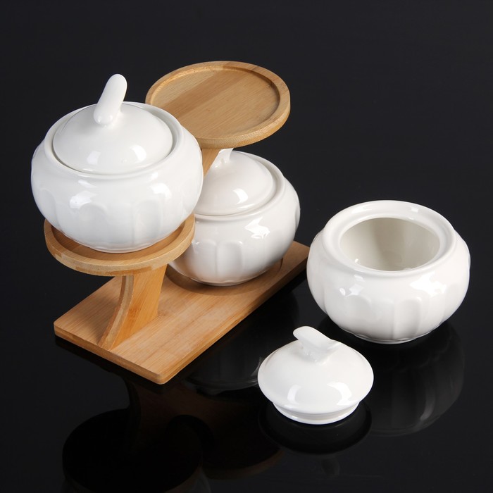Набор банок для сыпучих продуктов 500 мл "Эстет. Тыковка", 3 шт, на деревянной подставке