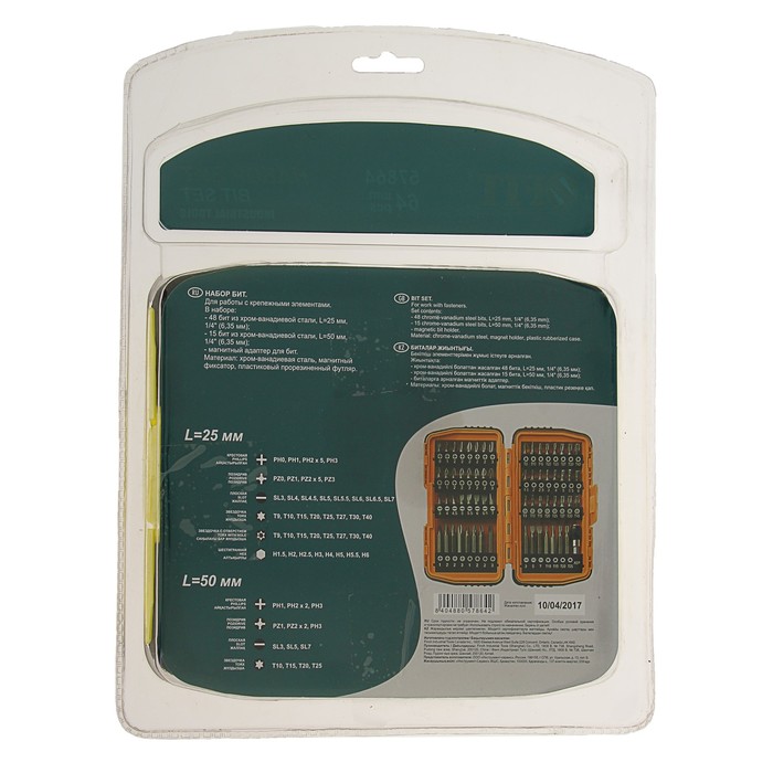 Набор бит FIT, CrV, РН0-3; PZ0-3, SL3-7, Т9-40, Н1,5-6, 48 шт. х 25 мм, 25 шт. х 50 мм