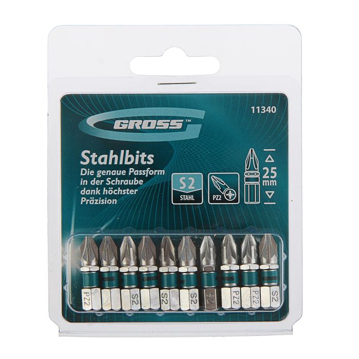 Набор бит GROSS, PZ2х25, сталь S2, 10 шт
