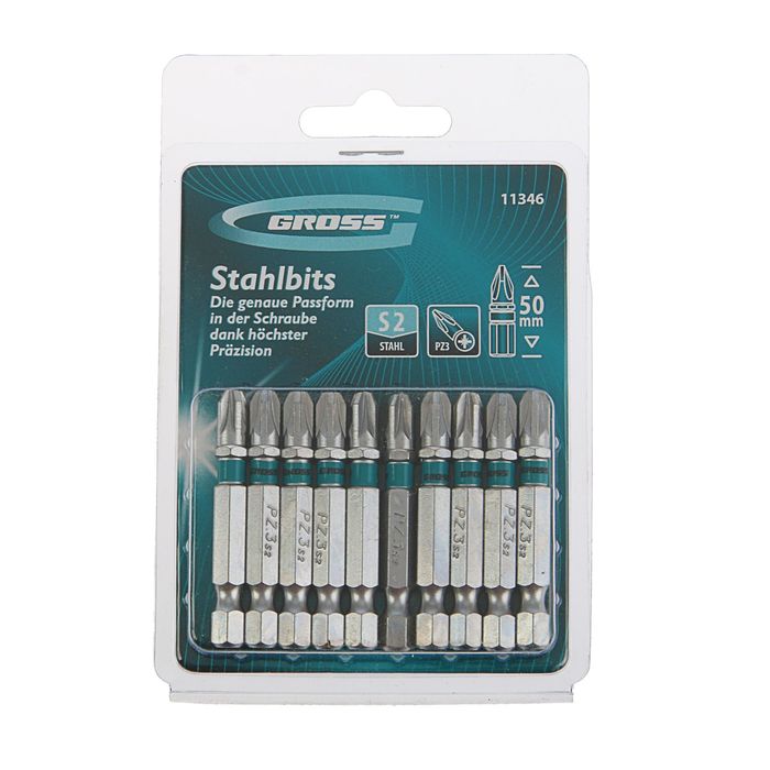 Набор бит GROSS, PZ3х50, сталь S2, 10 шт