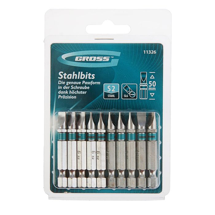 Набор бит GROSS, SL6,0х50, сталь S2, 10 шт