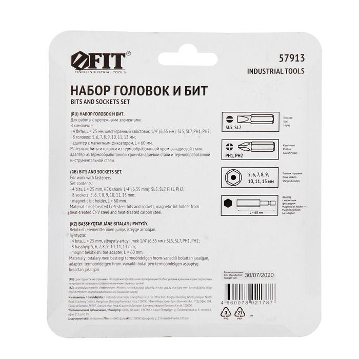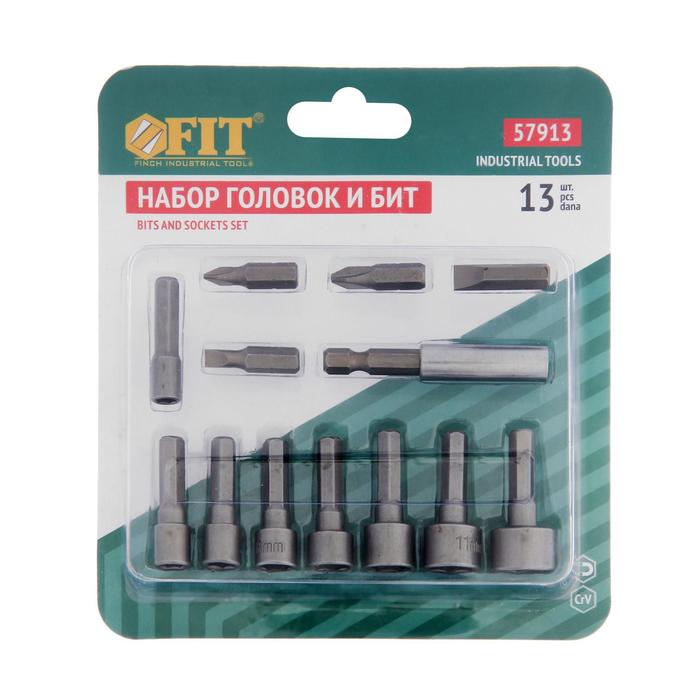 Набор бит и головок FIT, CrV, 4 биты + 8 головок + магн. адаптер, 13 шт.