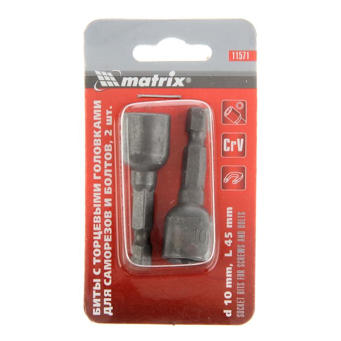 Набор бит MATRIX, 2 шт, с торцевыми головками 10 мм - 45 мм