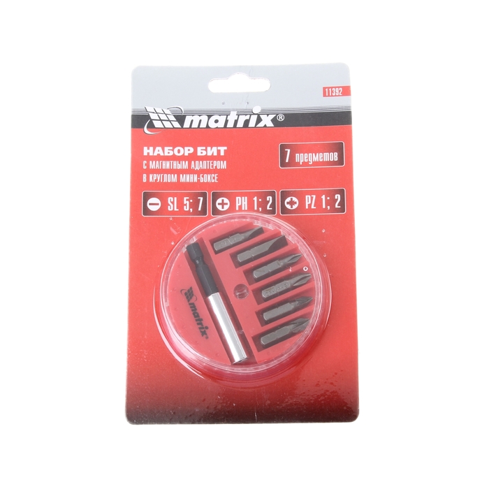 Набор бит MATRIX, 7 шт, магнитный адаптер для бит, сталь 45Х, в пластиковом боксе