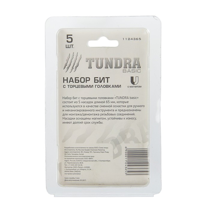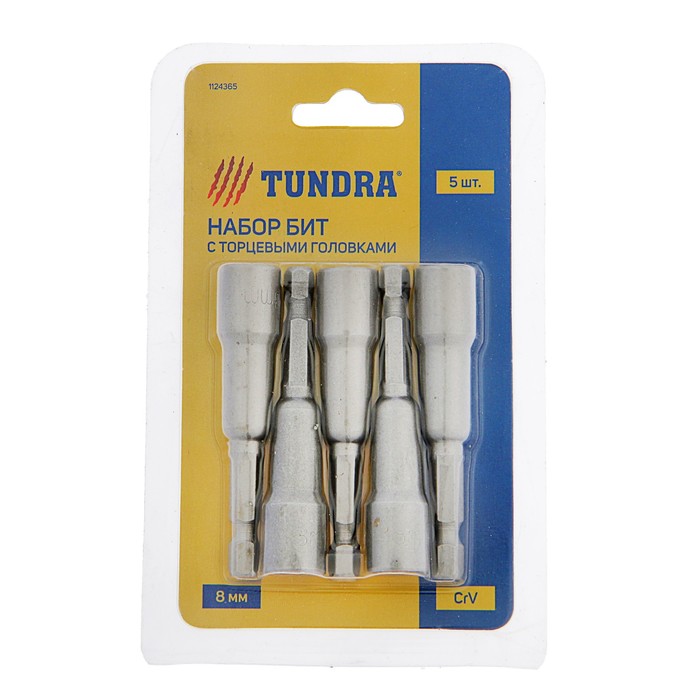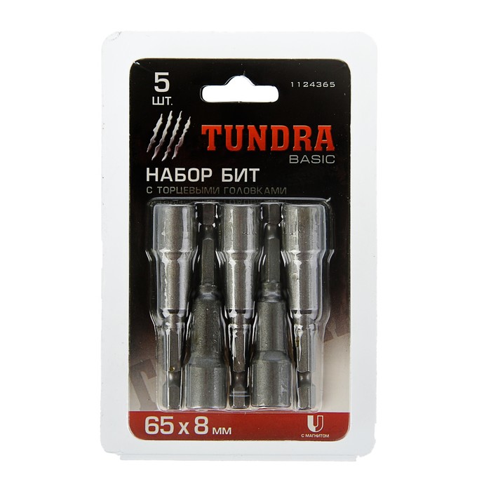 Набор бит с торцевыми головками TUNDRA basic, с магнитом 5 шт, L=65 мм, 8 мм