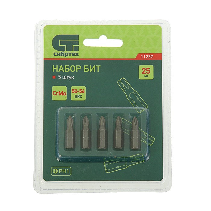 Набор бит "СИБРТЕХ", PH1x25, сталь CrMo, 5 шт
