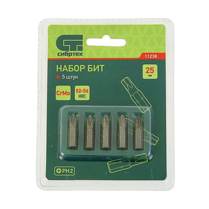 Набор бит "СИБРТЕХ", PH2x25, сталь CrMo, 5 шт