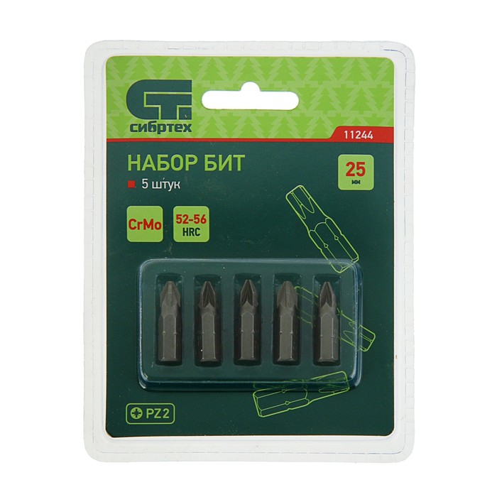 Набор бит "СИБРТЕХ", PZ2x25, сталь CrMo, 5 шт