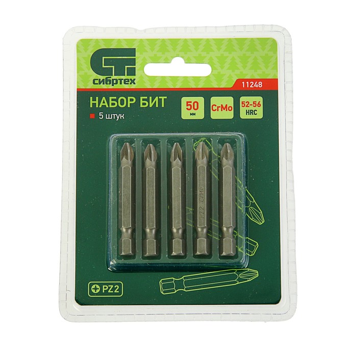 Набор бит "СИБРТЕХ", PZ2x50, сталь CrMo, 5 шт