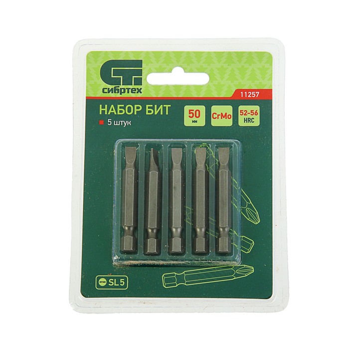 Набор бит "СИБРТЕХ", SL5x50, сталь CrMo, 5 шт