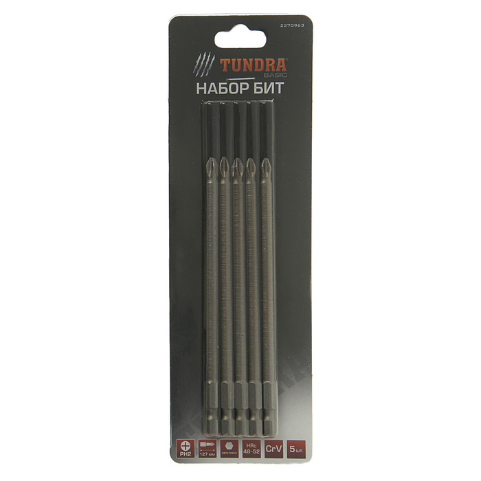 Набор бит TUNDRA basic, сталь CrV, 5 шт, 127 мм, PH2