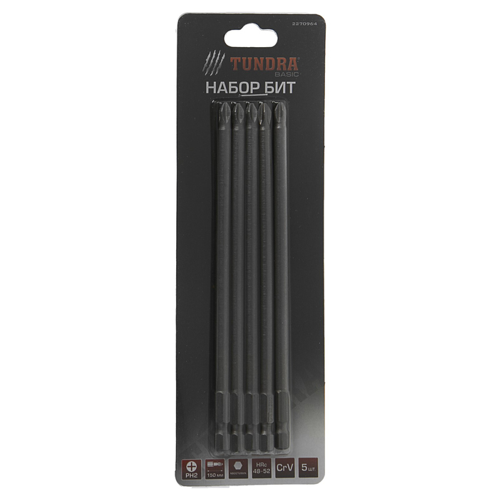 Набор бит TUNDRA basic, сталь CrV, 5 шт, 150 мм, PH2