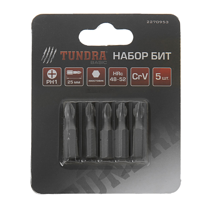 Набор бит TUNDRA basic, сталь CrV, 5 шт, 25 мм, PH1
