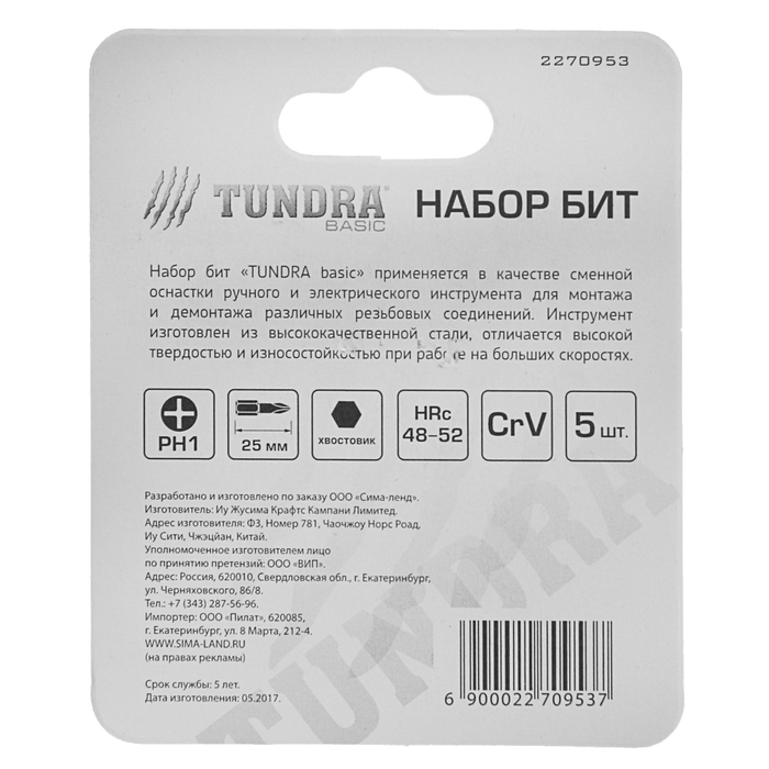 Стройте грандиозные планы, реализуйте свои идеи и не бойтесь знакомиться с новыми материалами и техниками. У вас всё получится, ведь у нас вы найдете инструмент как для бытового использования, так и для профессиональной деятельности. Может быть, Набор бит TUNDRA basic, сталь CrV, 5 шт, 25 мм, PH1 — это именно то, что вы всегда искали.
