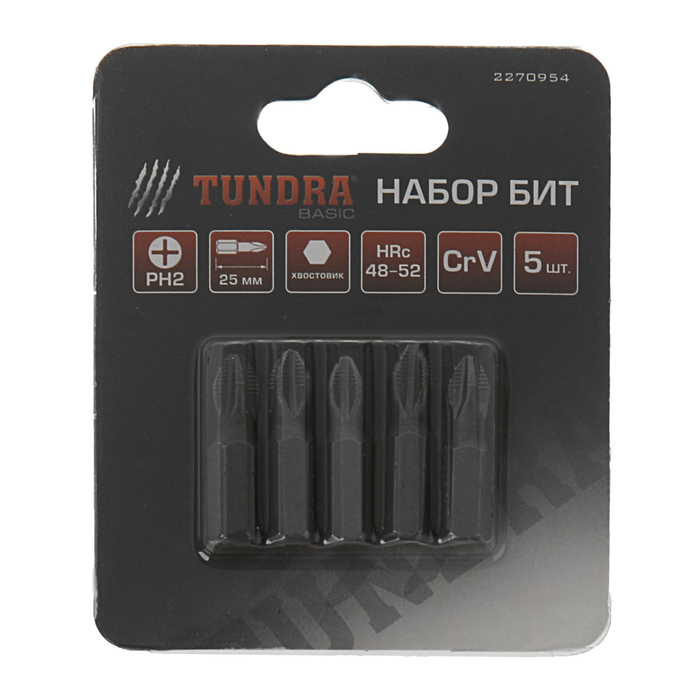 Набор бит TUNDRA basic, сталь CrV, 5 шт, 25 мм, PH2