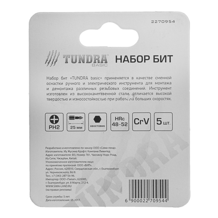Стройте грандиозные планы, реализуйте свои идеи и не бойтесь знакомиться с новыми материалами и техниками. У вас всё получится, ведь у нас вы найдете инструмент как для бытового использования, так и для профессиональной деятельности. Может быть, Набор бит TUNDRA basic, сталь CrV, 5 шт, 25 мм, PH2 — это именно то, что вы всегда искали.