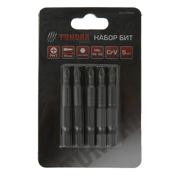 Набор бит TUNDRA basic, сталь CrV, 5 шт, 50 мм, PH1
