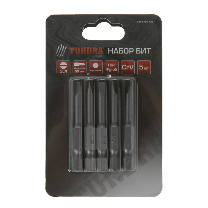 Набор бит TUNDRA basic, сталь CrV, 5 шт, 50 мм, SL4