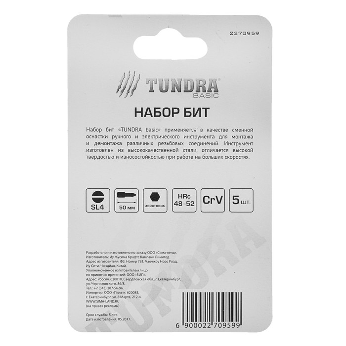 Стройте грандиозные планы, реализуйте свои идеи и не бойтесь знакомиться с новыми материалами и техниками. У вас всё получится, ведь у нас вы найдете инструмент как для бытового использования, так и для профессиональной деятельности. Может быть, Набор бит TUNDRA basic, сталь CrV, 5 шт, 50 мм, SL4 — это именно то, что вы всегда искали.
