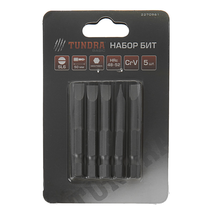Набор бит TUNDRA basic, сталь CrV, 5 шт, 50 мм, SL6