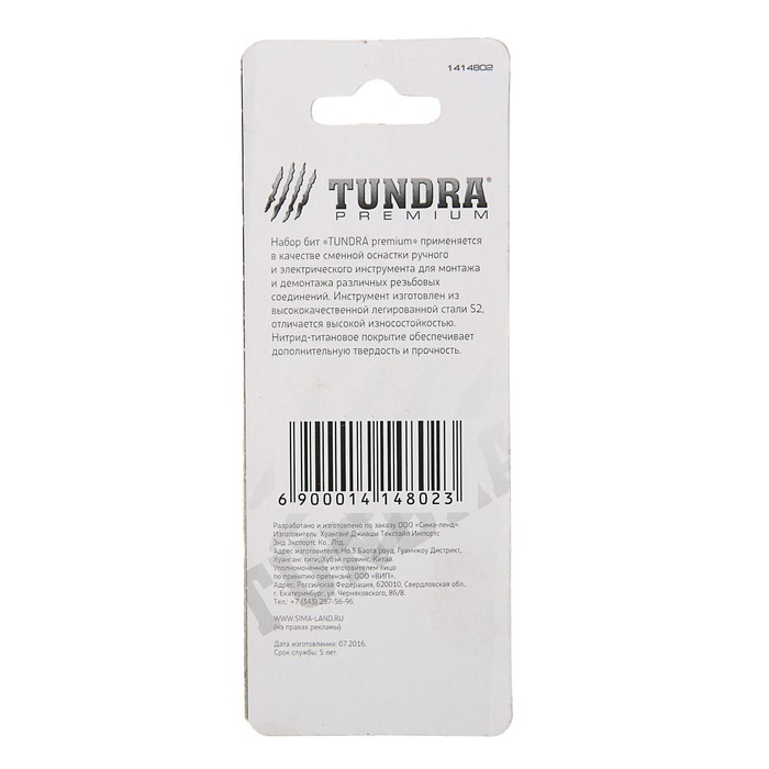 Набор бит TUNDRA premium применяется в качестве сменной оснастки ручного или электрического инструмента для монтажа и демонтажа резьбовых соединений. Инструмент изготовлен из легированной стали S2, которая отличается высокой износостойкостью. Нитрид-титановое покрытие обеспечивает дополнительную твёрдость и прочность.