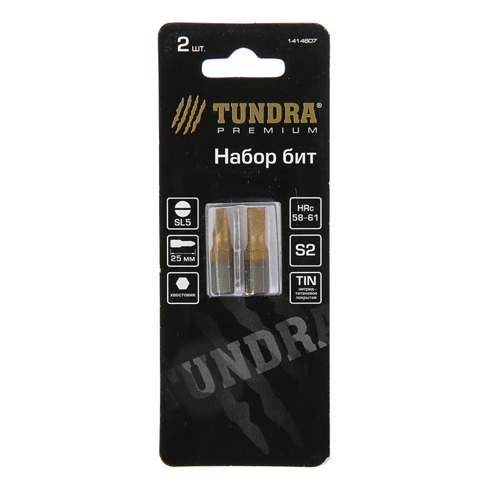 Набор бит TUNDRA premium, сталь S2, нитрид-титановое покрытие, 2 шт, 25 мм, SL5