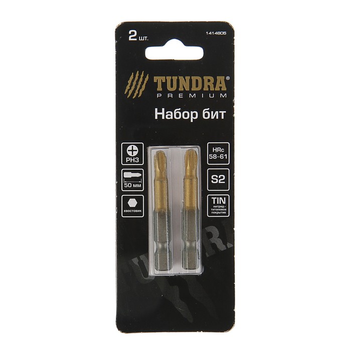 Набор бит TUNDRA premium, сталь S2, нитрид-титановое покрытие, 2 шт, 50 мм, PH3