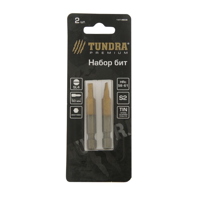 Набор бит TUNDRA premium, сталь S2, нитрид-титановое покрытие, 2 шт, 50 мм, SL4