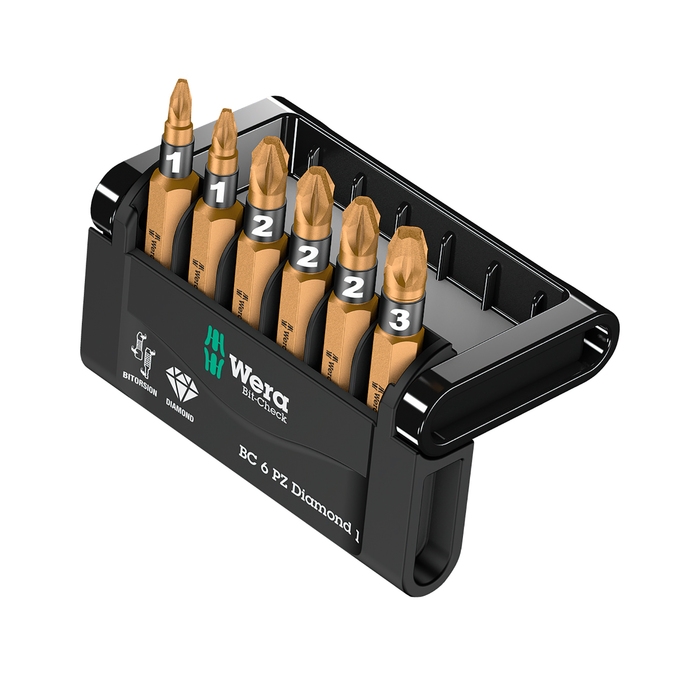 Набор бит WERA WE-057402, Bit-Check 6 PZ Diamond 1, PZ 1, PZ 2, PZ 3, 6 шт.