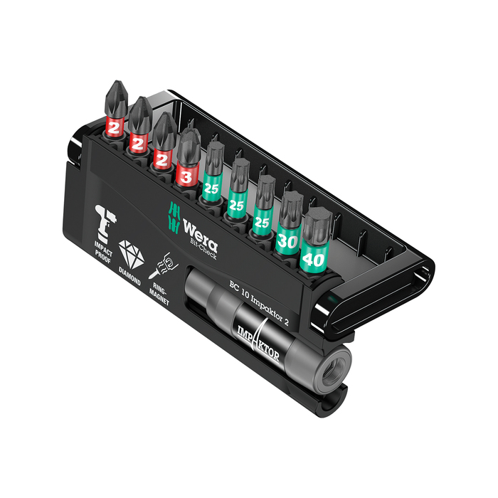 Набор бит WERA WE-057682, Bit-Check 10 Impaktor 2, ударный держатель, 9 ударных насадок