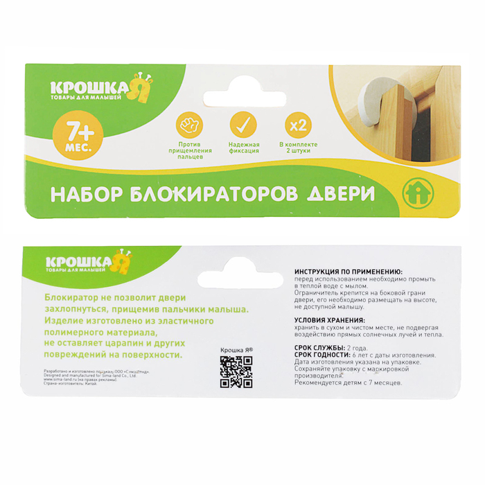 Ограничитель крепится на боковой грани двери. Блокиратор необходимо размещать на высоте, не доступной малышу. Изделие изготовлено из эластичного полимерного материала, не оставляет царапин и других повреждений на поверхности.