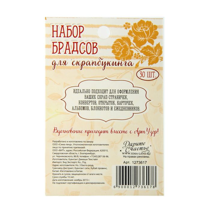 Брадсы — это незаменимая вещь истинных любителей скрапбукинга. Красивые, функциональные и простые в использовании, они украсят ваш hand-made шедевр. И, что очень важно, вам не потребуется клей!