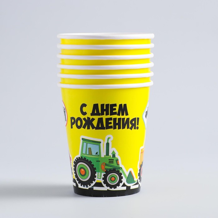 Набор бумажных стаканов "С Днём Рождения", дорога, 250 мл, 6 шт.