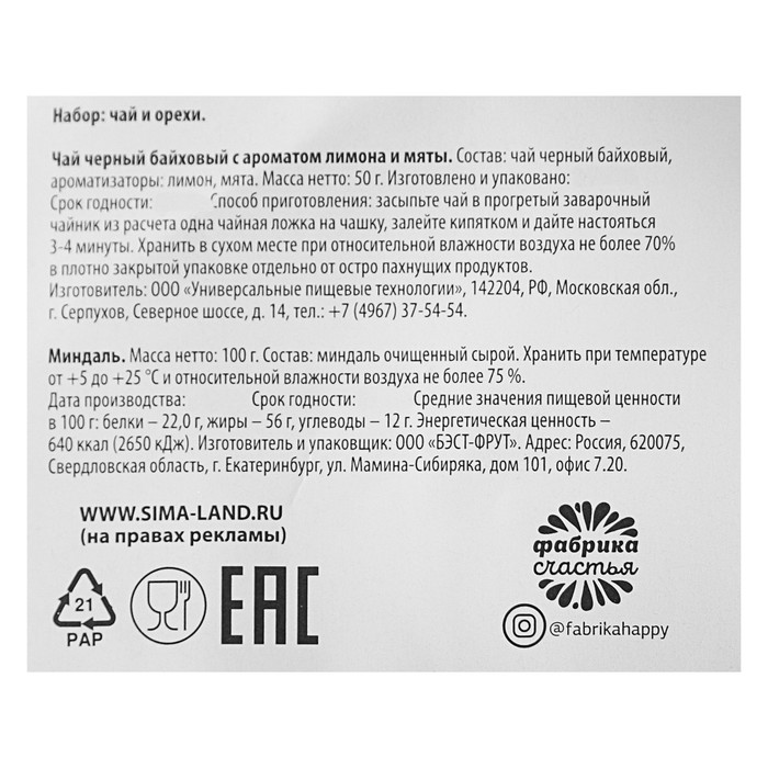 Набор Чай 50 г, орехи в коробке с вырубкой НГ "Любимой мамочке"