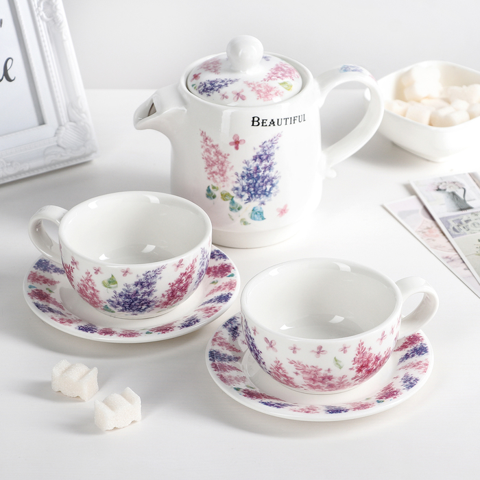 Набор чайный 2 персоны "Лаванда": чайник, чашка d=9 см, блюдце 12,5 см