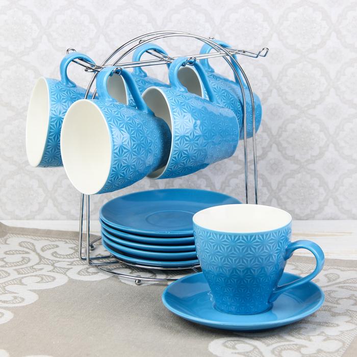 Набор чайный "Акварель", 12 предметов: 6 кружек 240 мл, 6 блюдец, цвет синий