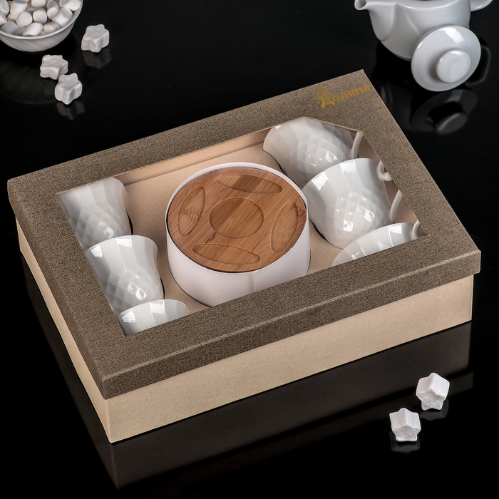 Набор чайный "Эстет", 12 предметов: 6 чашек 160 мл, 6 деревянных блюдец