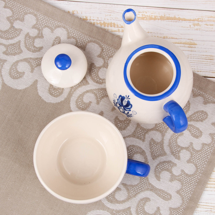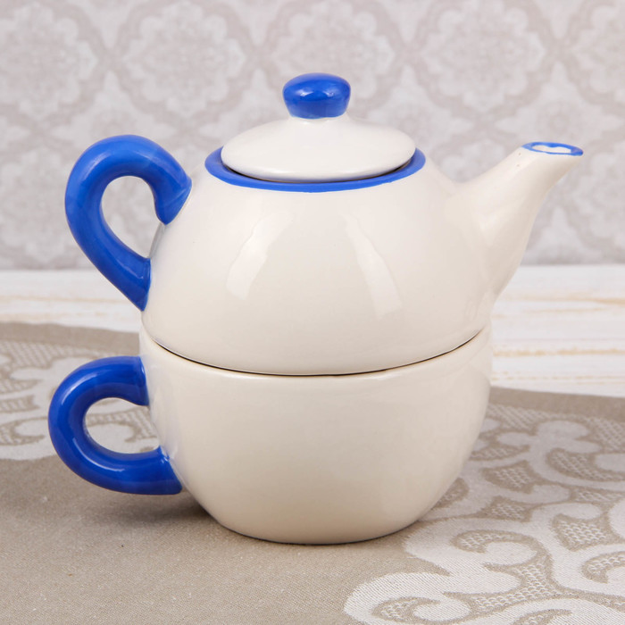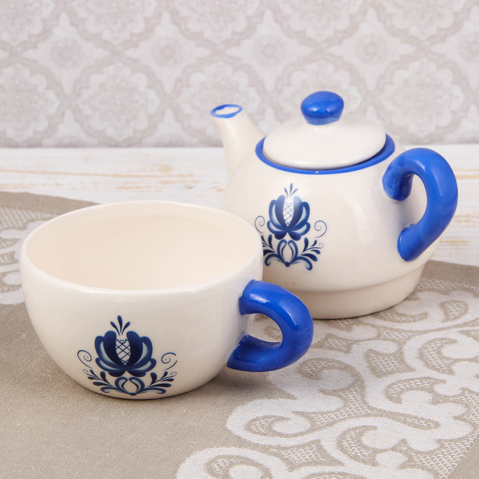 Набор чайный "Гжель", 2 предмета: чайник 420 мл, чашка 350 мл