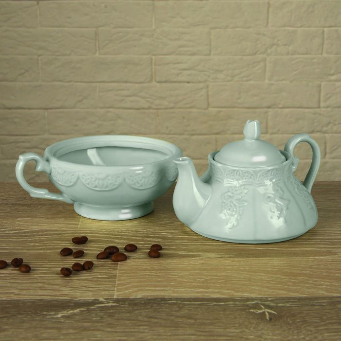 Набор чайный "Кружевная лоза" 380 мл, 2 предмета: чайник, чашка, цвет голубой