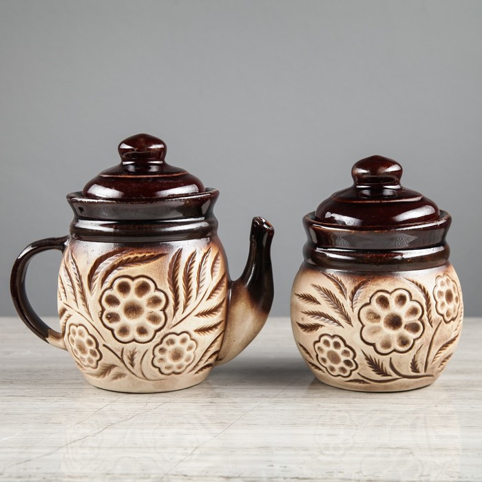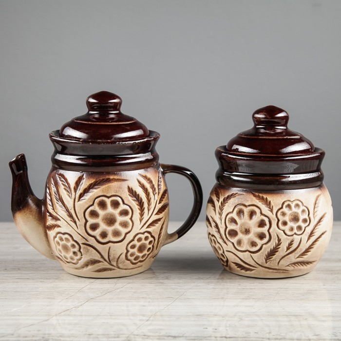 Все предметы набора изготовлены вручную из керамики. Этот экологически чистый материал легко переносит высокие и низкие температуры, устойчив к царапинам, потёртостям, не имеет запахов и примесей. Керамическая посуда хорошо держит тепло напитка, не влияя на его вкус.