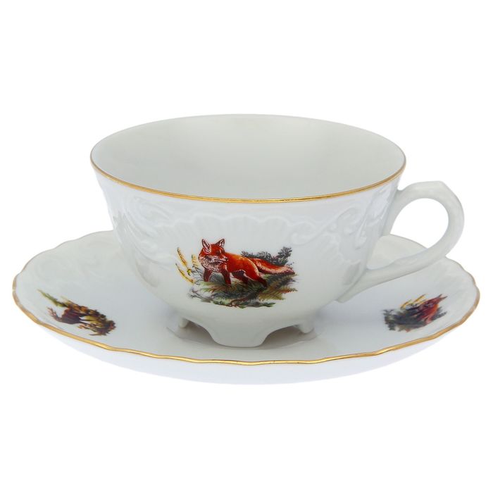 Набор чайный на 6 персон "Охота белая", 12 предметов: 6 чашек 220 мл, 6 блюдец 15,7 см