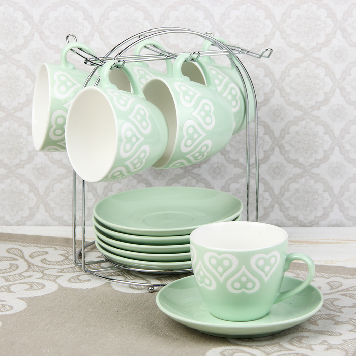 Набор чайный "Романтика", 12 предметов: 6 чашек 210 мл, 6 блюдец, цвет зеленый
