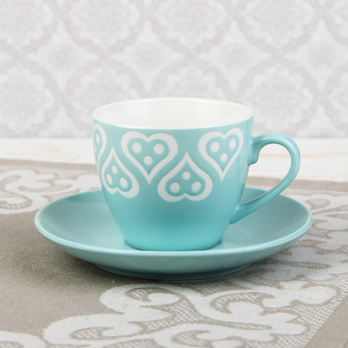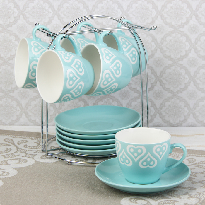 Набор чайный "Романтика", 12 предметов: 6 чашек 210 мл, 6 блюдец, на подставке, цвет голубой