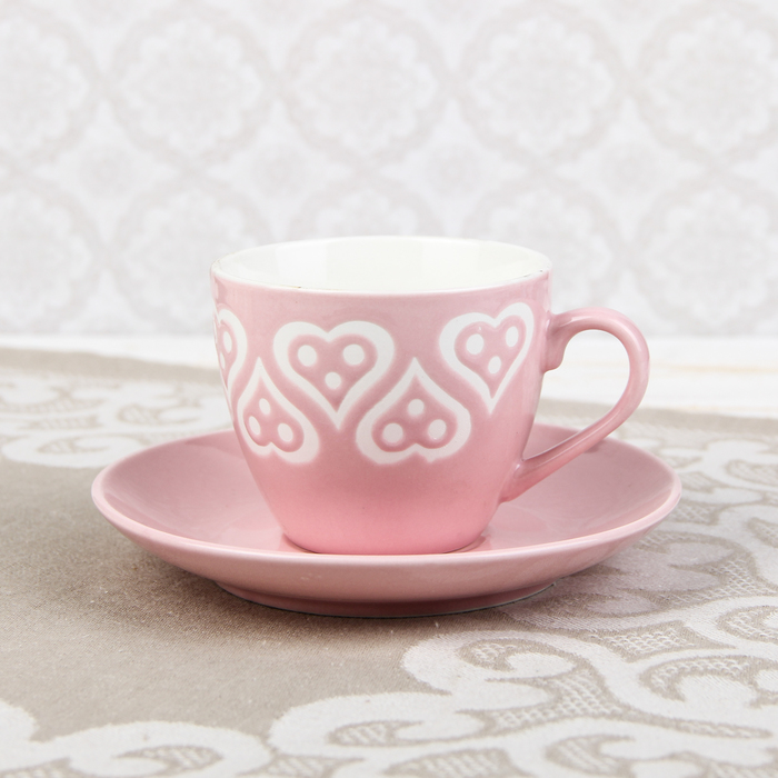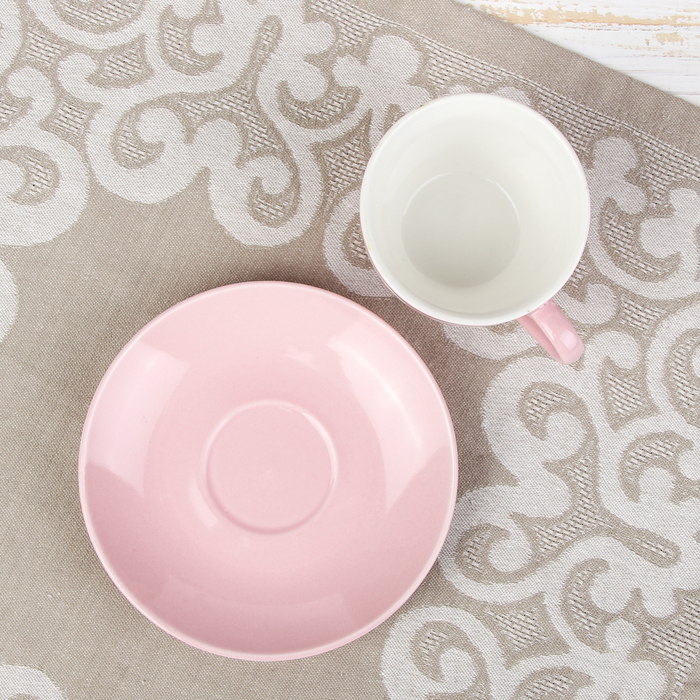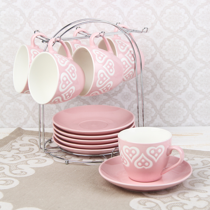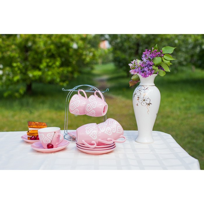 Набор чайный "Романтика", 12 предметов: 6 чашек 210 мл, 6 блюдец, на подставке, цвет розовый