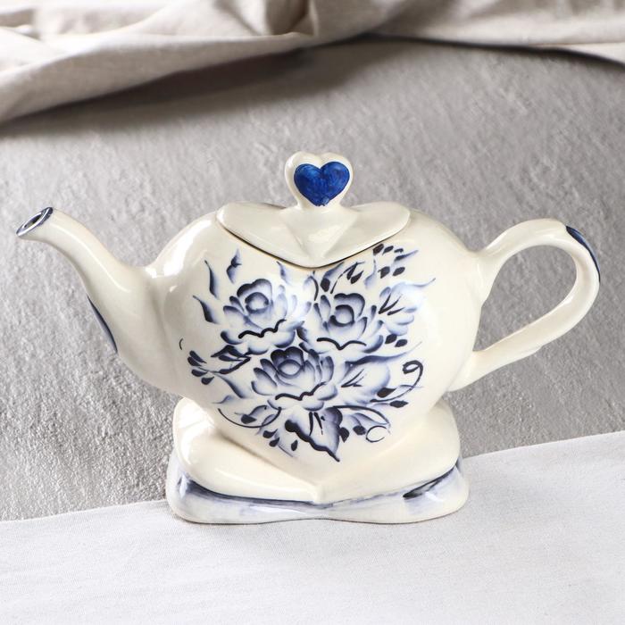 Набор чайный "Сердце", чайник, 2 кружки, гжель