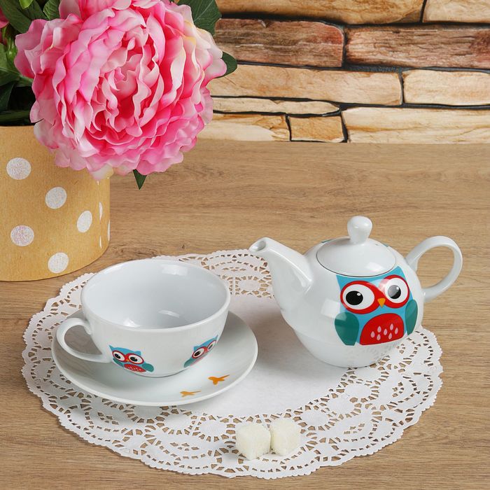 Набор чайный "Совунья", 3 предмета: чайник 420 мл, чашка 240 мл, блюдце