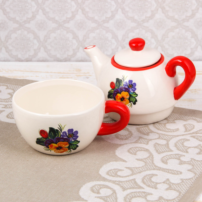 Набор чайный "Жостово", 2 предмета: чайник 420 мл, чашка 350 мл