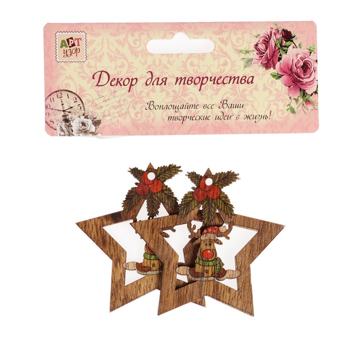 Набор декора для творчества дерево "Лосик в звёздочке" набор 2 шт 7х6,7 см